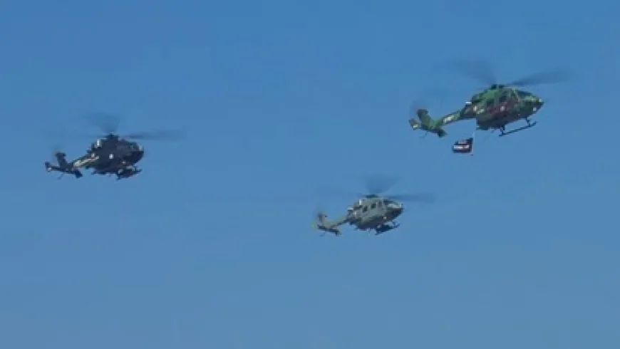 सैन्य परेड के दौरान ध्रुव हेलीकॉप्टर के अलावा प्रचंड और अन्य आधुनिक वाहनों, मिसाइल प्रणाली तथा वायु शक्ति के विभिन्न घटकों को भी दिखाया गया, जिससे भारत की सामरिक क्षमता और तकनीकी उन्नति का प्रभावशाली प्रदर्शन हुआ।