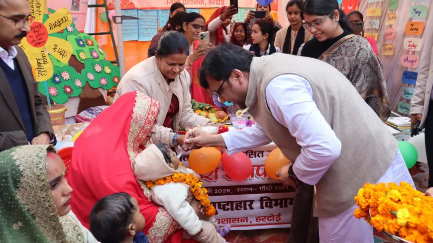 हरदोई (आरएनआई) आज उत्तर प्रदेश स्थापना दिवस के अवसर पर मुख्य अतिथि के रूप में राज्यमंत्री स्वतंत्र प्रभार आबकारी एवं मद्य निषेध नितिन अग्रवाल ने सर्वप्रथम गांधी भवन प्रांगण में कृषि, उद्योग, उद्यान, शिक्षा, स्वास्थ्य, नेडा, बैंक, जल निगम, यातायात, समाज कल्याण, खादी ग्रामोद्योग, एनआरएलएम, पशुपालन विभाग, डूडा, नेडा आदि विभागों द्वारा लगाई गई प्रदर्शनी का फीता काटकर उद्घाटन किया तथा मुख्य विकास अधिकारी व अन्य अधिकारियों के साथ समस्त स्टालों का अवलोकन किया। मंत्री ने पाँच बच्चों का अन्नप्राशन कराया तथा उनकी माताओं को पोषण पोटली प्रदान की।