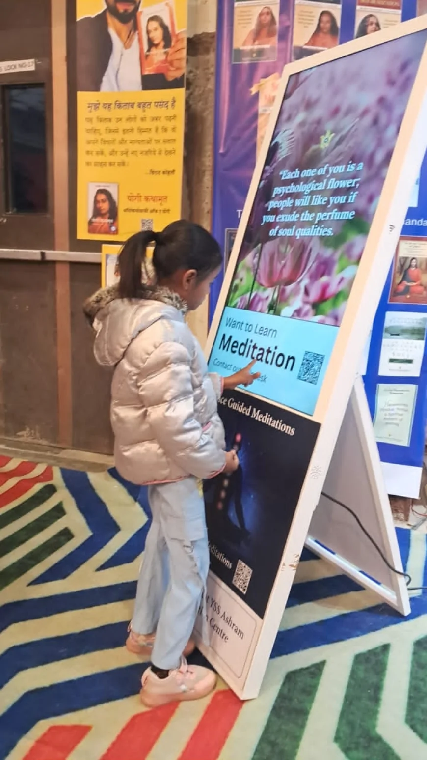 YSS stall offers a serene haven amidst the bustling fair, with a Guided Meditation Corner that's inspiring inner peace and drawing crowds.